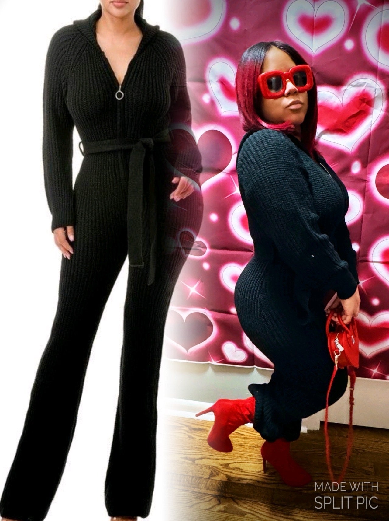 Embrace warmth and style with this Cozy Cable Knit Jumpsuit, designed for comfort and elegance in colder seasons. Crafted from a soft, ribbed knit fabric in a warm rust color, this jumpsuit features a zip-up front, allowing for adjustable styling and an effortlessly chic look. The attached belt enhances the waistline, creating a flattering silhouette, while the fitted long sleeves and straight-leg design add to the cozy appeal. Perfect for lounging at home or stepping out in style, this jumpsuit pairs well with heeled sandals or boots for a versatile look.